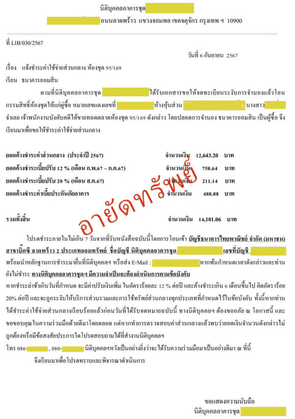 ทวงถามค่าส่วนกลางจากนิติบุคคลอาคารชุด การทวงถามค่าส่วนก…